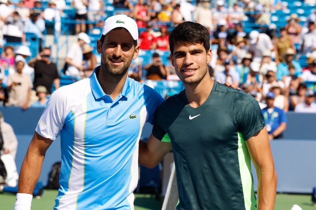 Carlos Alcaraz e Novak Djokovic estão do mesmo lado da chave e poderão se encontrar nas semifinais do torneio.